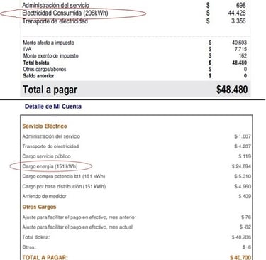 Por eso, para lograr que tu cuenta promedie $0 CLP, siempre deberás generar más energía de la que consumes. El proyecto será más atractivo cuando la mayor parte de tu boleta corresponda a consumo de energía (kWh), y no a otros cargos.